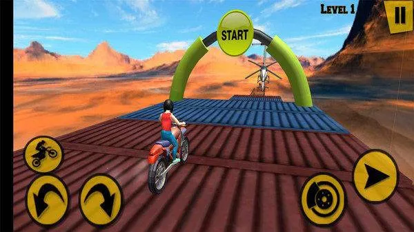 **操作体验**:虚拟摇杆和按钮设计十分合理。左侧摇杆控制摩托方向,右侧按钮负责加速、刹车与跳跃,操控流畅,能让玩家精准地执行各种动作,轻松应对赛道上的挑战。