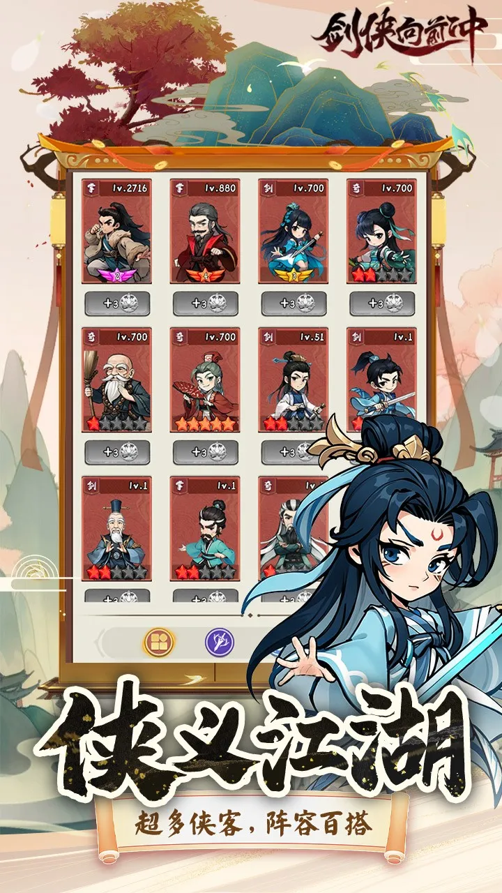 剑侠向前冲2026下载是一款武侠主题策略卡牌游戏。新用户登录注册有赠礼,七日签到有额外奖赏。以挂机闯关为核心,可自由选武侠人物,习华丽招式。还有多种福利及攻略,多种阵容与副本玩法,特色多多。