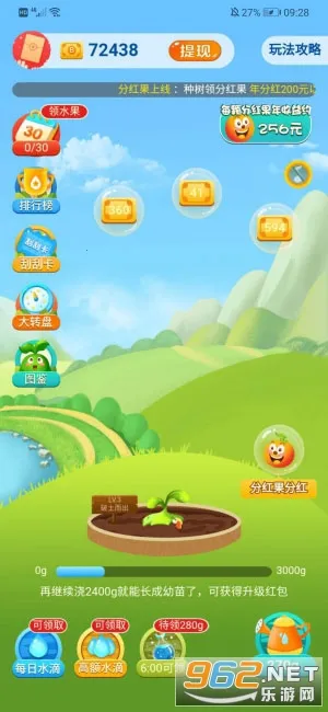 在多多农场,可自由选择种植,还能邀好友一起娱乐。赚钱方式多样,通过在线种蔬菜农作物赚取报酬奖励,到账极速。新人下载送18800金币(相当于1.88元),首次满0.3元可提现秒到账,后续还有0.5元低门槛提现额度。静态收益高,升级果树浇水能获大量金币现金奖励,活跃30天必得价值2030元当季畅销水果且免费包邮到家。红包奖励丰厚,绑定微信钱包后,转账、发红包转出极速。每天简单操作,如浇浇水、除除草、驱驱虫,就能轻松获取红包及收徒奖励,还有大量线上任务。点击闲置土地种蔬菜水果,等待收获,不同品质作物报酬不同,用报酬扩建农场、解锁作物与道具。总之,多多农场功能贴合需求,能切实解决用户娱乐与赚钱问题。