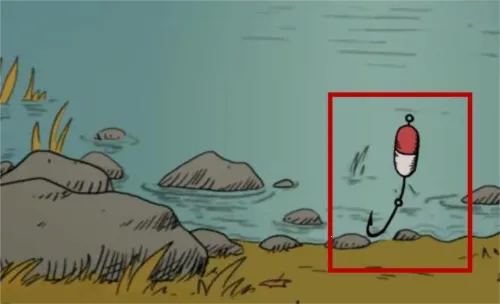 6、在浮标周围出现光圈的时候,就表示有东西上钩了,这个时候点击浮标就可以把东西钓起来,可能是鱼,也可能是破靴子。