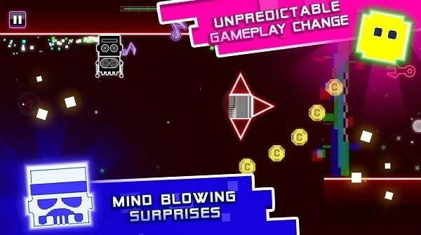 操作方面,极为简单,通过两个按键就能轻松控制移动和跳跃,新手能快速上手。游戏玩法丰富,有多种模式可选,关卡挑战错综复杂,充满挑战。玩家要运用跑酷技巧躲避障碍,收集金币升级装备。