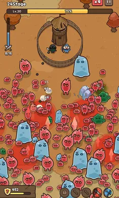 这是一款类Rogue塔防游戏。游戏中,你将与英雄伙伴携手抵御史莱姆的来袭。