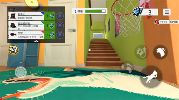 游戏画面细腻写实,以第一人称视角让玩家化身为可爱猫咪。操作上,左侧摇杆控制移动,右侧按键实现跳跃、抓取等动作,触摸屏幕操控流畅自然,上手轻松。