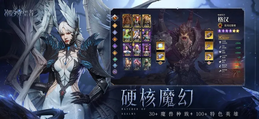 1. **英雄丰富且特色鲜明**:汇集来自三十余个种族、八大阵营的超过百位特色英雄。每个英雄都有独特背景故事与个性CG动画,玩家可自由招募养成。不同阵营英雄还有专属领主技能,同阵营成员能获加成,守望者小队阵营领主可提升队伍里守望者英雄基础属性,激活圣光祝福BUFF,提升伤害与治疗倍率。