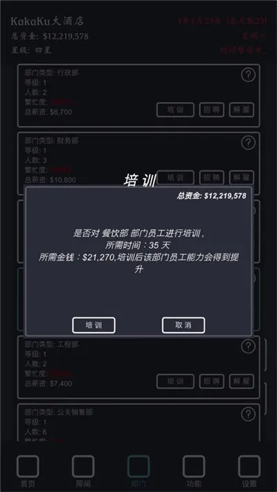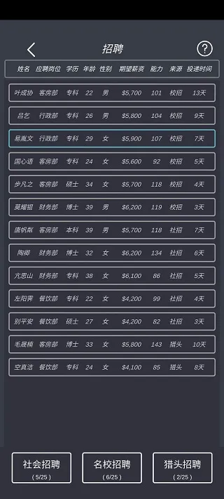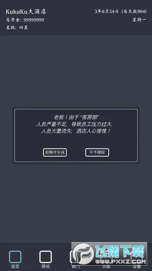 不过游戏也存在一些问题。比如员工离职难以挽留,缺乏针对性激励措施;游戏节奏较慢,三星到四星积累时间长;随机事件后期较少;酒店升星要求不明确;社会招聘和高校招聘作用不大;音效缺失,招聘易错过;不同文凭和年龄员工能力值设定不够合理等。总体而言,游戏有乐趣但也有待优化完善。