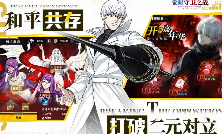 觉醒守卫之战2026最新版本是基于东京食尸鬼改编的高燃3D战斗喰种题材手游。玩家化身喰种或搜查官,组建小队战斗,玩法为放置回合制,有多种特色,福利丰厚,还有新内容等你来探索。
