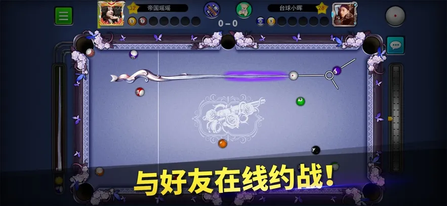 在台球世界里,你是否渴望拥有无限长的瞄准线来精准击球?其实,游戏中有不少技巧能助你提升瞄准能力。首先要学会找目标球的击点,根据力的直线传递原理,通过目标球进袋线路确定主球撞击点位。比如,想把球打进袋,得先看球路是否合适,从球袋口中心经目标球中心划直线,这就是目标球进袋路线。