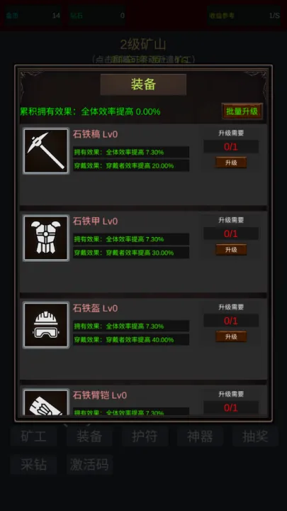 多元成长乐趣足:游戏提供装备升级、矿工强化等多元成长体系,玩家可解锁神器提升挖矿效率,还能享受离线收益。随着探索区域的扩展和资源的积累,逐步构建属于自己的挖矿帝国。