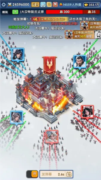游戏特色鲜明。生存逻辑闭环,要建造设施维持居民状态,极端天气会影响资源采集与军队战力。武将系统丰富,按品质、阵营、兵种划分,有升级、强化、觉醒等培养方式,特定组合有联动效果。