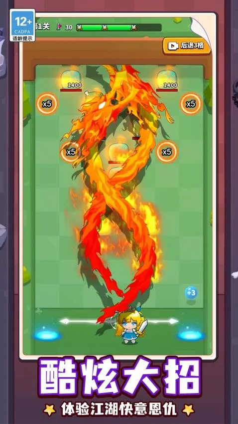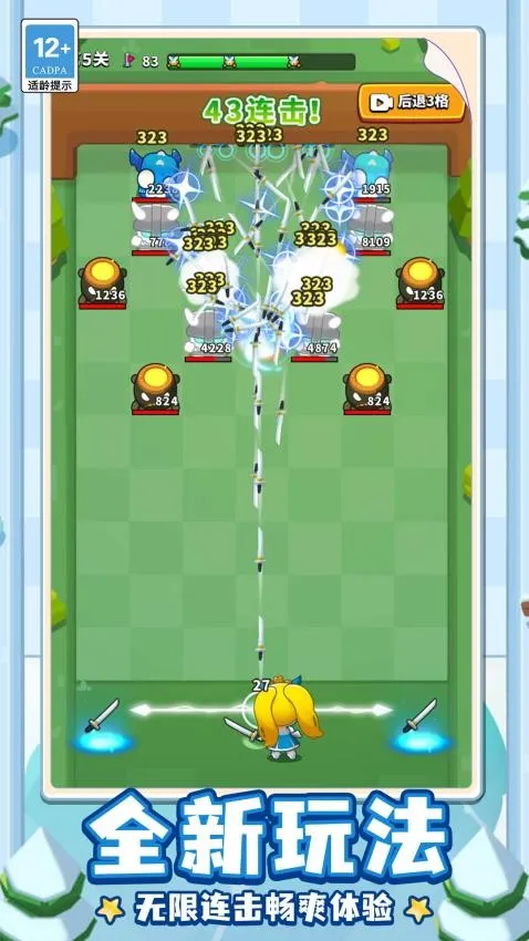 3. 玩法丰富多样,包含切割冒险挑战、可调节飞刀轨迹、运用反弹机制、角色升级养成、技能搭配组合等玩法,带来解压又上头的飞刀对决快感。
