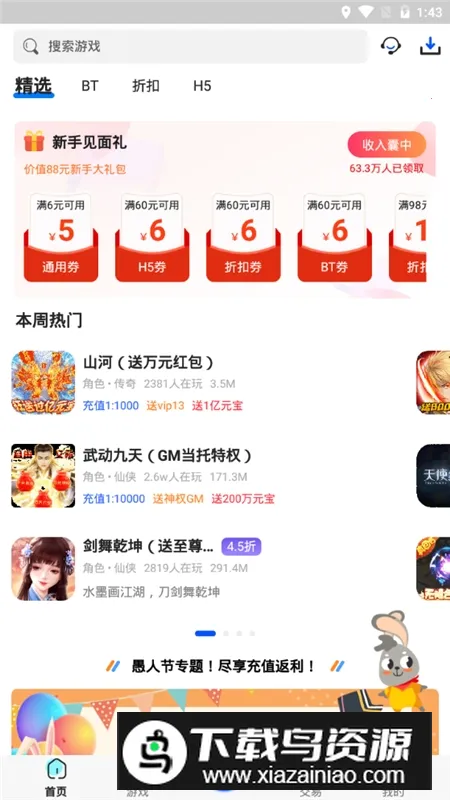 2. 游戏资源超丰富:拥有丰富的游戏资源库,涵盖动作、冒险、角色扮演、策略等各类热门游戏,满足多样化游戏口味与需求,让你随时随地开启游戏世界大门,在碎片化时间尽享游戏乐趣。