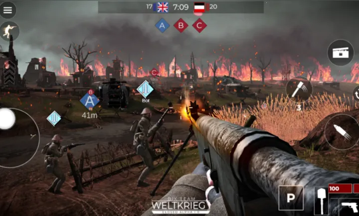 这是一款以一战为背景的移动射击游戏,针对移动设备全面优化,受战地系列启发。