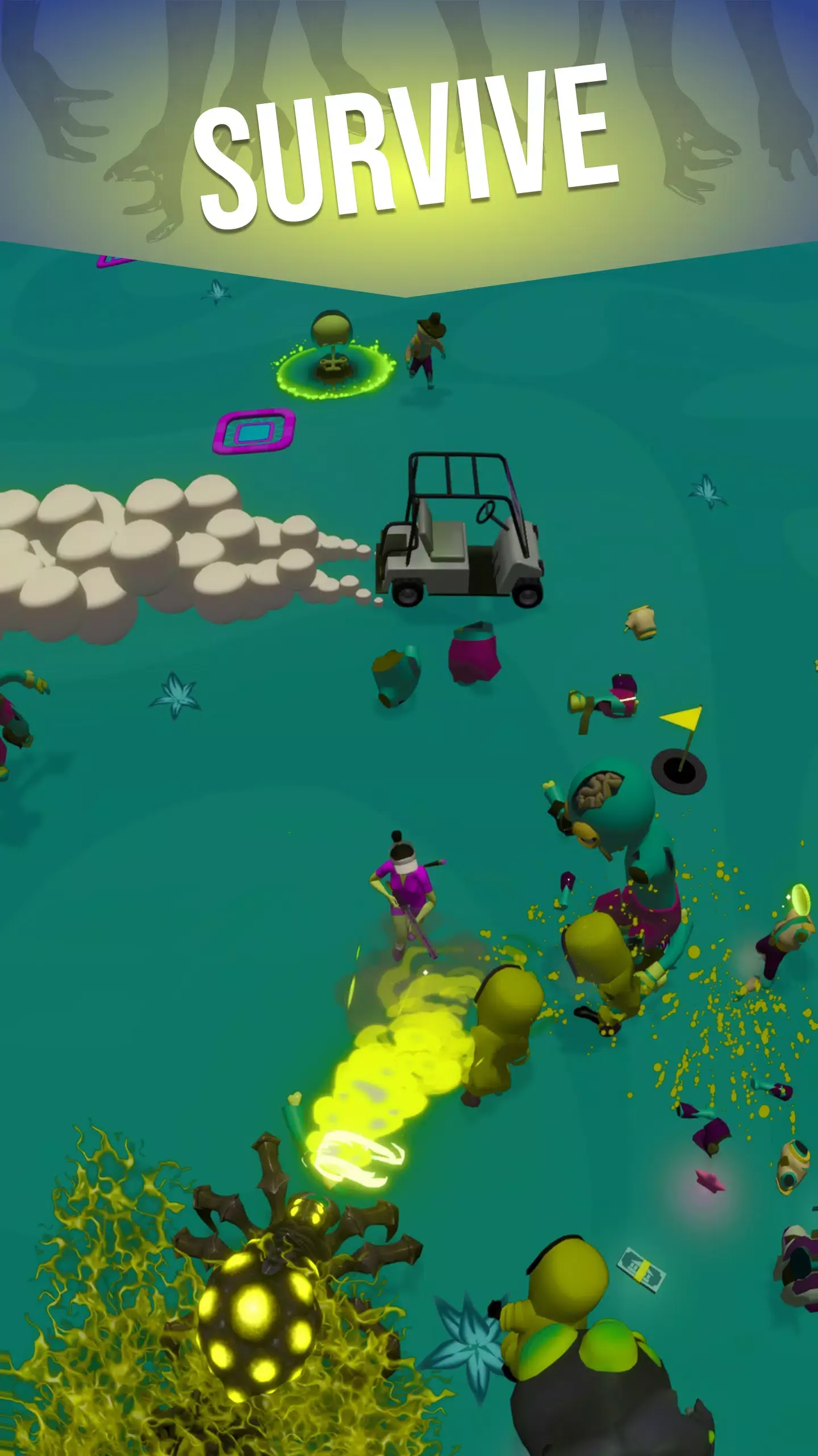 随着游戏进程能获得奖励,用于升级库存和武器,解锁高尔夫球车新工具及配件,增强战斗能力,游戏时间越长武器库越强大。