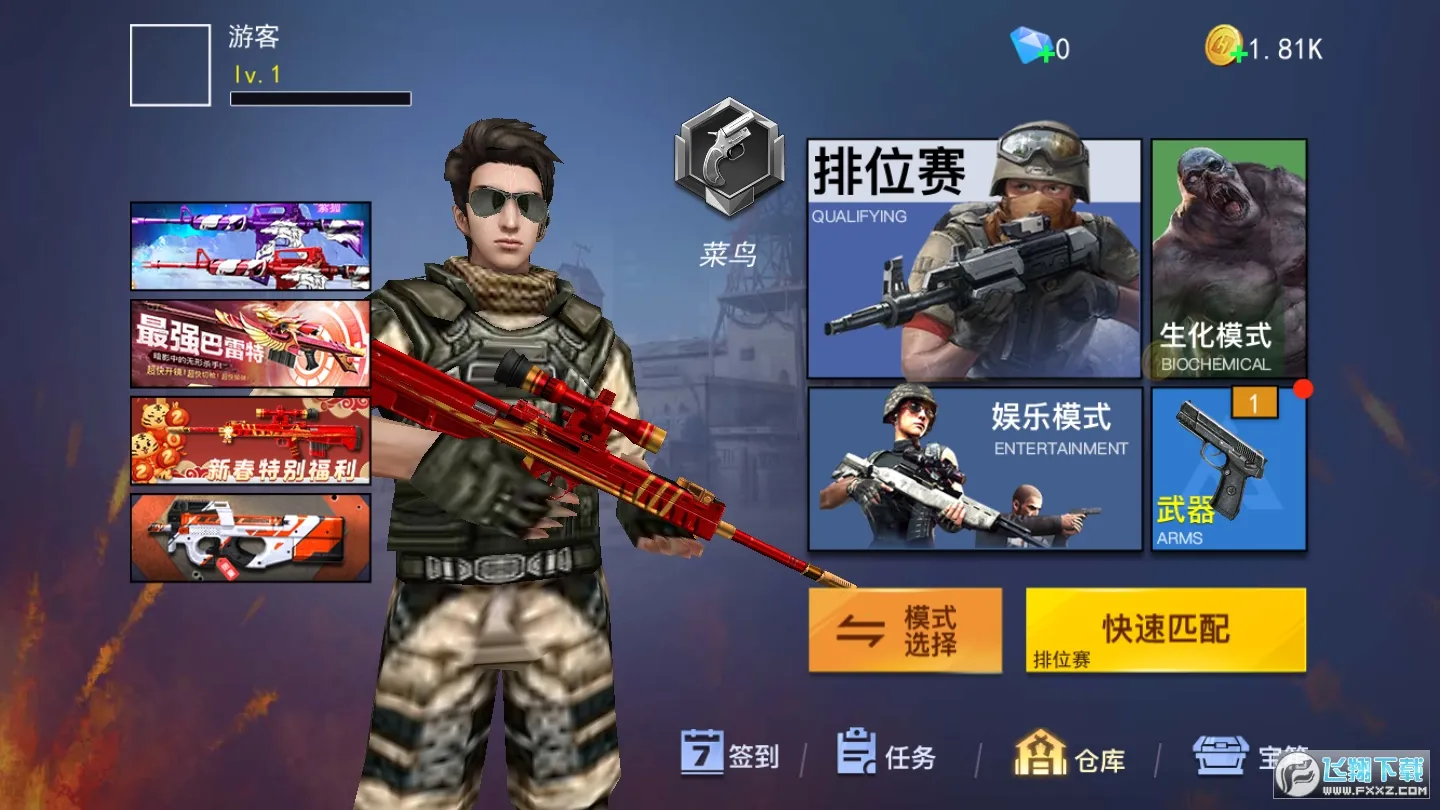 游戏玩法丰富多样。有多种经典模式,如5V5排位、生化模式、娱乐模式等。在娱乐模式中,涵盖狙击、刀战、2V2、单挑等多种玩法,满足不同玩家的畅玩需求。玩家可操控各类强力枪械,在多变场景中与敌人激烈交锋。不同武器有着独特射击感受,玩家能收集丰富装备全面武装角色。游戏支持多人组队,玩家可与队友紧密配合赢取胜利。战场上,玩家需灵活走位躲避攻击,利用掩体保护自己,坚持战斗直至胜利。