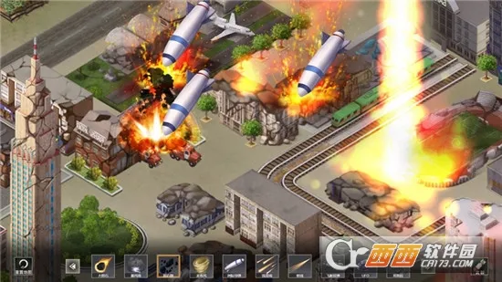 游戏画面采用 3D 效果和写实画风,建筑逼真,场景精致,能带来身临其境的体验。玩家可使用多种现代化武器装备,如核弹、导弹、黑洞、激光束等,自由破坏城市建筑,每种武器造成的破坏效果不同。