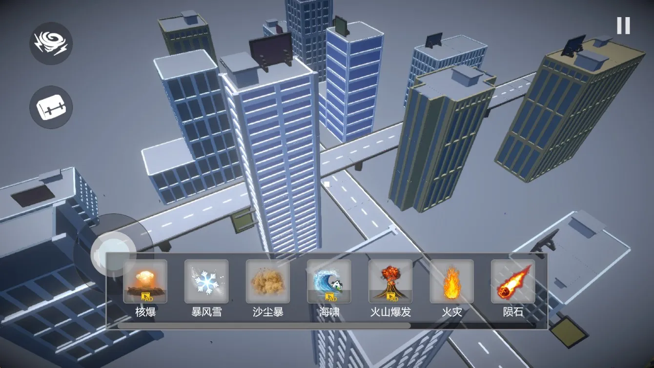玩法操作自由,没有限制。游戏中有多种摧毁方式,如直接撞击、炸毁、焚烧等。还能调整天气,从多角度目睹破坏场景。玩家破坏的越多,获得的分数越高,奖励也越丰厚。此外,还有模式编辑器,可制作和定制自己的城市,与朋友互动竞争。