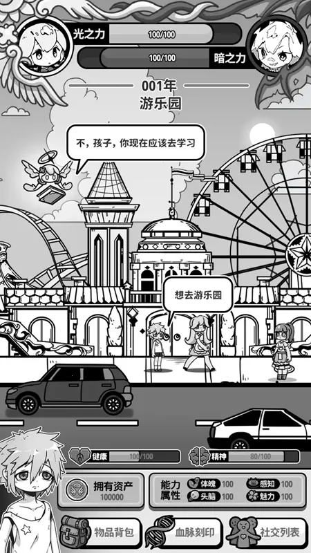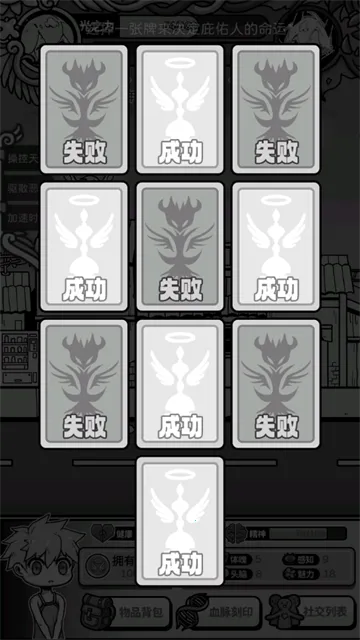 在玩法上,它依旧保留了独特的策略养成元素。玩家操控天使干预被庇护者人生轨迹,通过卡牌组合与资源分配来影响命运走向。不同职业路径有着各自独立技能模块与事件,增加了丰富度。
