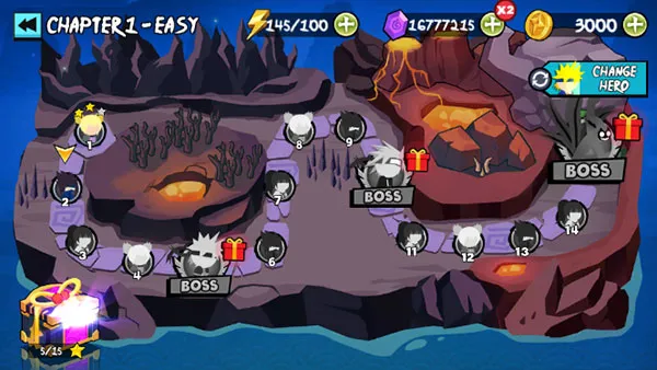 重点来啦!它有内置菜单版,全解锁了火柴人英雄可直接选择。还有破解版,开启修改器就能获得无限金币、金券、忍者卷轴以及无限生命值、技能点等。有了无限金币和金券,就能轻松购买适合的武器,升级忍者,强化技能,毫无压力地击败对手。不管是面对普通敌人还是强大boss,都能畅快战斗,享受极致的游戏体验,快来试试吧!