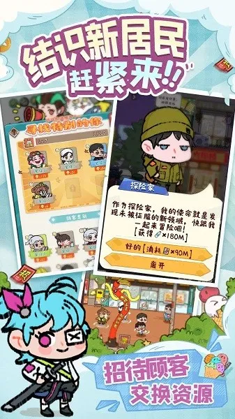 在这里,你可以建造如大排档、棋牌室、便利店等超多特色店铺,努力让它们都盈利。经营中会遇见不同顾客,倾听他们的故事,一起让商业街更繁华。快来下载,开启你的美食经营之旅吧!