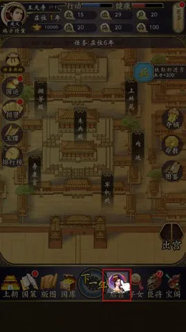 2、首先是上朝,随机点击兵部、礼部等上书奏折,根据选择来获取/减少声望、政务。