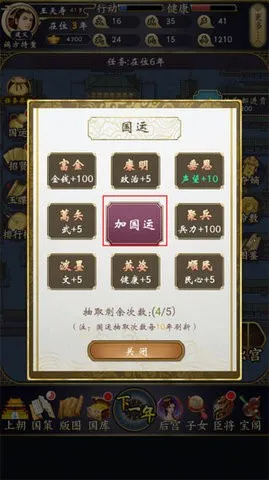 7、有五次免费抽取国运的机会,次数用完了需要每十年才能刷新。