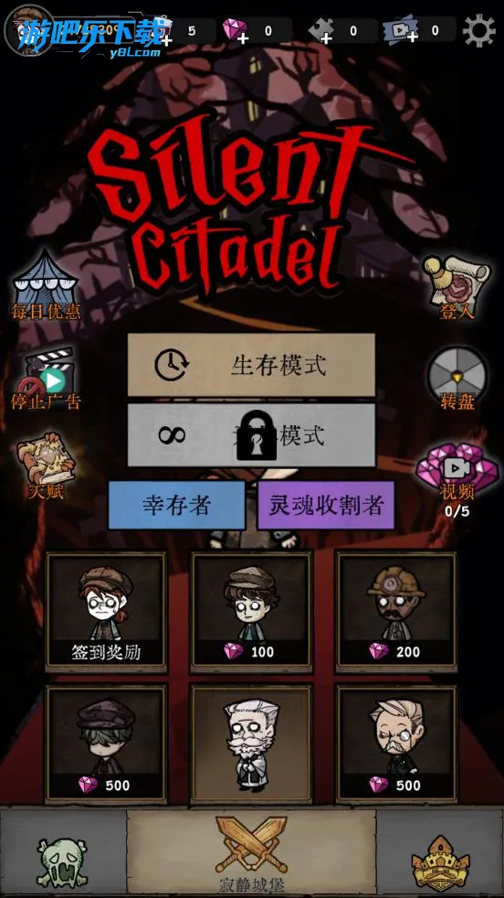 寂静城堡无限钻石版是趣味策略塔防手游,玩法似猛鬼宿舍。玩家在诡异城堡抵御灵魂收割者,可通过睡觉获金币建防御设施。有两种模式,多种角色可解锁,还有丰富玩法与无尽模式,充满神秘与刺激。