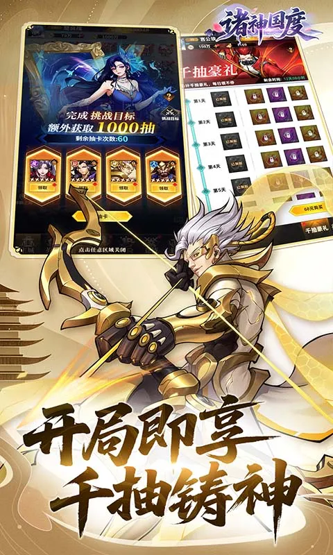 诸神国度是一款封神主题策略手游,国风q版角色。可收集角色组阵容、升级神装杀敌。有丰富玩法,如收集资源、建造工坊、盟友互助。还有累充活动,能感受欧美魔幻风格与多人战争玩法,争夺王者荣耀。