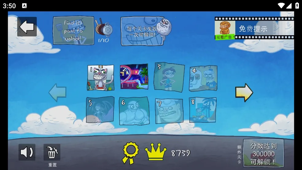 史上最贱的小游戏TrollFaceQuest是休闲恶搞闯关游戏,操作简单。有130多个关卡,能解锁成就、称霸排行榜。玩法多样,可发泄情绪,体验全新控制方式,还有暴走漫画画风,老少皆宜,快来挑战。