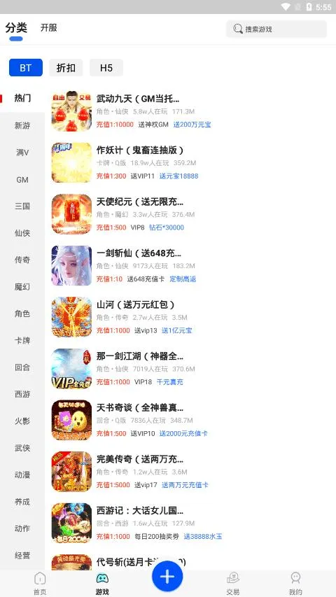 2. 游戏资源十分丰富多彩,涉及类型全面,无论是热门的BTGM版、无限元宝破解版,还是三国古风挂机等各种游戏种类一应俱全,全方位满足不同需求。