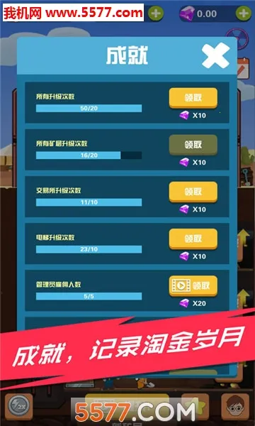 2. 玩法简单易上手,玩家只需点击操作就能招募员工、开采矿层、升级解锁等,轻松打造矿产帝国。