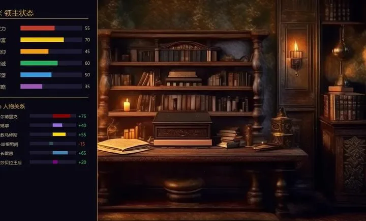2. 独特属性系统:设有六维属性系统,武力、智谋、魅力、统御、信仰、财富,属性决定可用选项,没有最优解,全凭玩家选择。