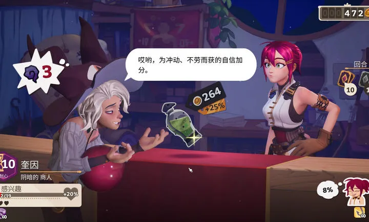 1、**独特玩法**:游戏融合了模拟经营、卡牌策略和轻度恋爱模拟等多种玩法。玩家既能体验炼制药水、装饰店铺、管理资源的经营乐趣,又能通过基于卡牌的讨价还价机制提升趣味性,还能与十余位 NPC 亲密互动,丰富游戏内容。