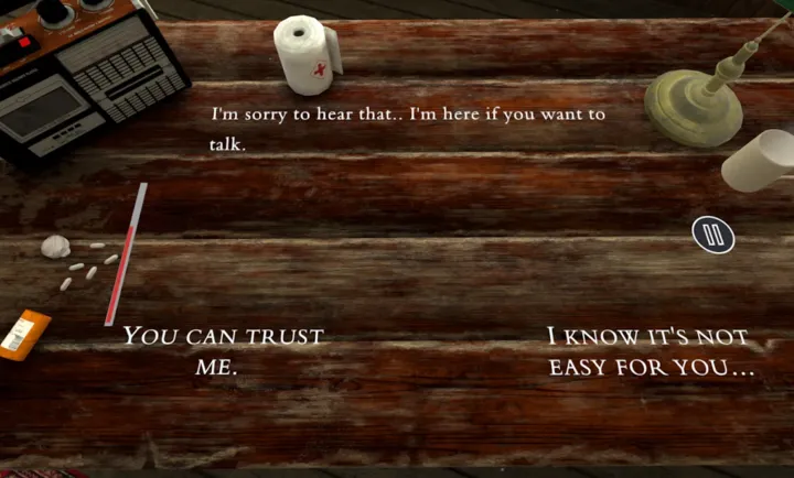 频率是深度沉浸式互动叙事游戏,结合悦耳配音、音乐音效与3D环境。玩家扮演游侠诺亚,通过收音机与身处危险的伊莱扎互动,帮她做艰难决定,限时选择,否则随机选,背景设定在全球灾难后的复杂世界。