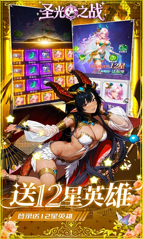 还有《圣光之战0.1折免费版》,它以三国为背景,挂机就能玩。超炫萌系画风搭配卡牌系统,让你招募三国英雄统一三国。福利超多,登录领648代金券,签到送充值卡、五星武将等。游戏简单易上手,轻松放置挂机养成。