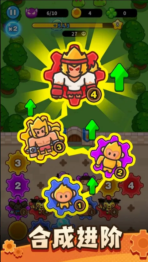3、丰富玩法模式:提供不同的生存模式还有无尽模式可挑战,战斗中能实时调整战略,还有多种特色玩法,如随机掉落武器装备强化技能、通过连接齿轮组件生成士兵等,玩法丰富多样。