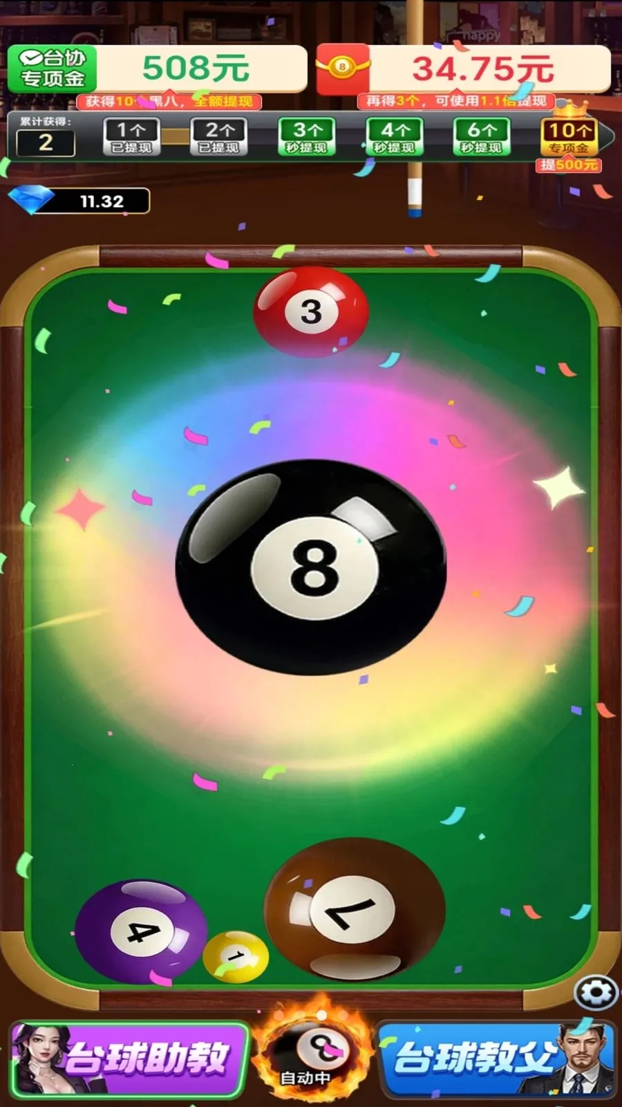 1. 合成获红包:每次合成台球都能拿到红包奖励,轻松赚取收益。