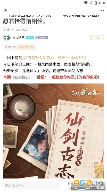 在这里,仙迷能看到基于仙剑IP的各种内容,涵盖UGC创作、官方资料、新闻和游戏福利等。大家可自由交流互动,分享游戏心得,探讨相关消息。