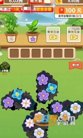 2、奖励形式多样:玩家通过种花、完成任务、达到特定目标等多种方式获得金币、经验值,还有机会获得现金红包,以及随机奖励和挑战道具。