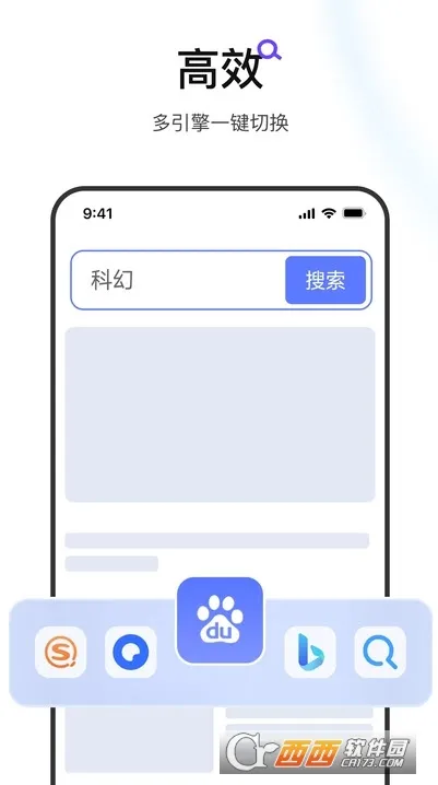 2、多引擎搜索:支持切换多种搜索引擎,包括百度、搜狗等,用户能根据习惯自由切换,快速精准获取信息,世界一触即达。