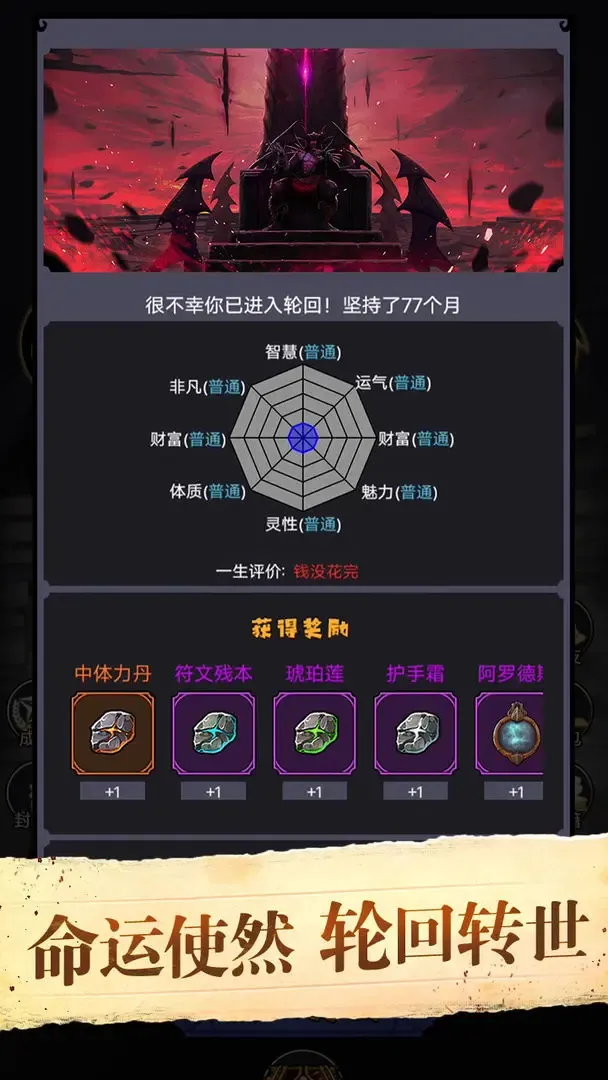 诡秘重开模拟器是文字冒险游戏,以神秘非凡时代为背景。玩家化身调查员,自由分配属性,走多样发展路径,在暗黑世界探险解谜,与恐怖生物对抗,有多结局,无广告,能体验刺激的生存冒险 。