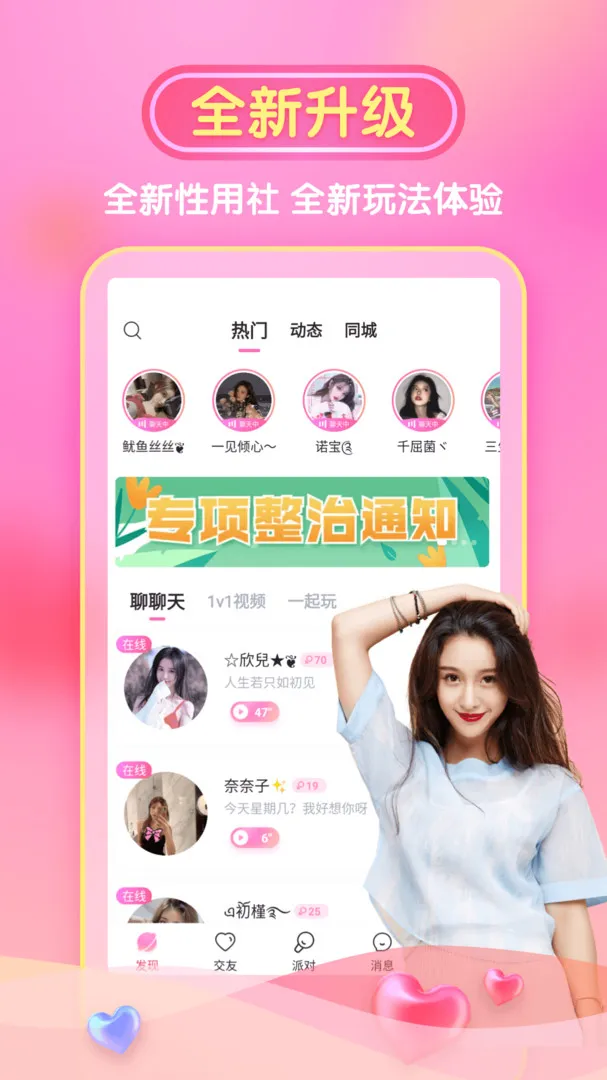 性用社最新手机版是杭州任性贸易有限公司推荐的成人应用。提供陌生人匿名交流、男女配对,有社区分享、情趣用品商城、声优互动等特色,还有性急送服务,注重隐私保护,更新优化功能体验 。