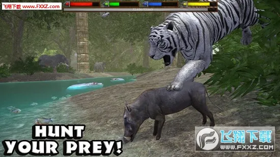 《JungleSim安卓版》是一款精彩的3D动物模拟游戏。它采用成熟的3D引擎,把原始森林的环境和天气模拟得极为细致,无论是阳光洒下的光斑、雨滴溅起的水花,还是起雾时模糊的灌木丛,都十分逼真。