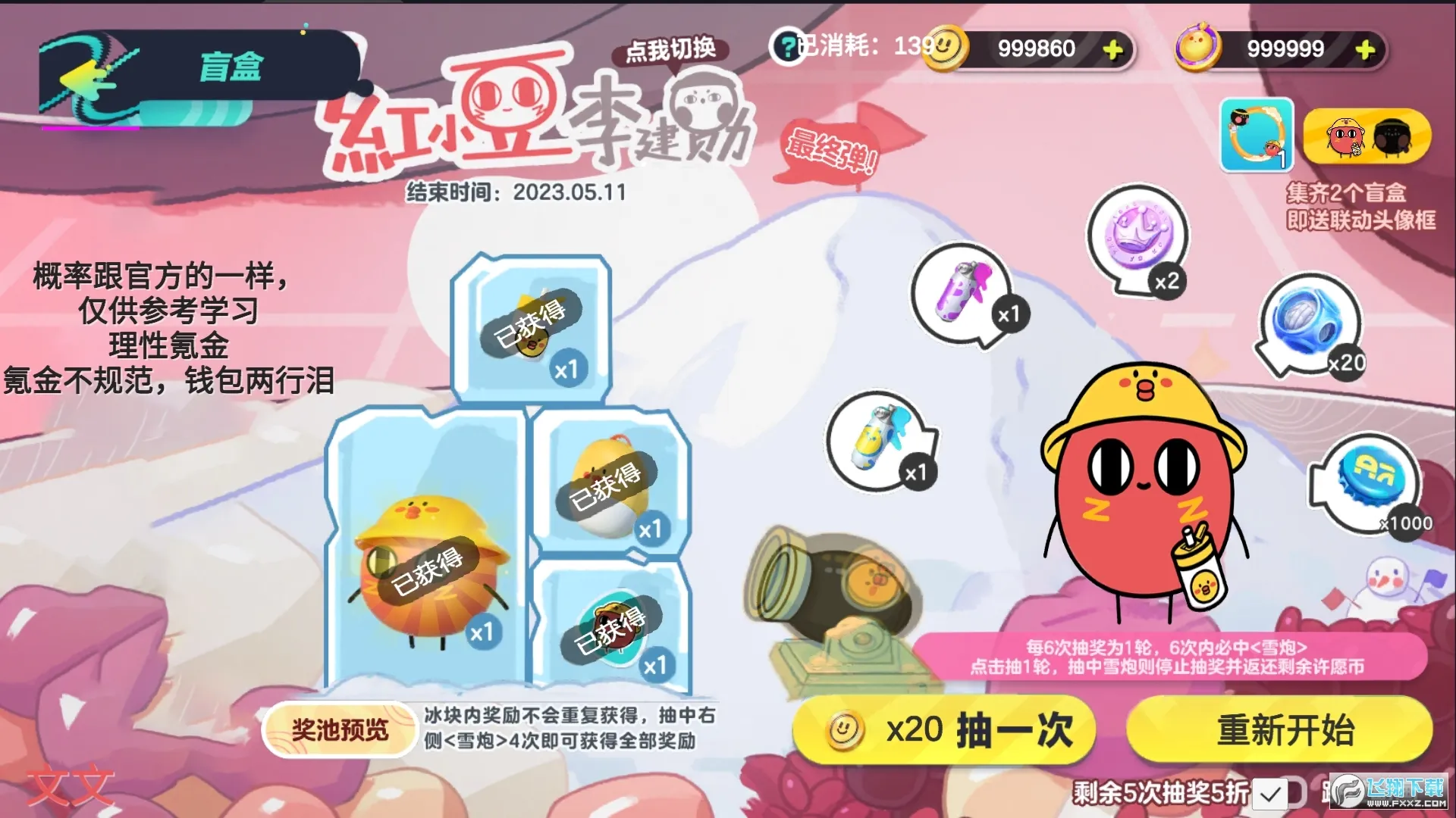 3、体验丰富:奖池内容实时预览,有六次抽奖保底机制。具备雪炮累积兑换、集齐盲盒礼包送联动头像框等特色。