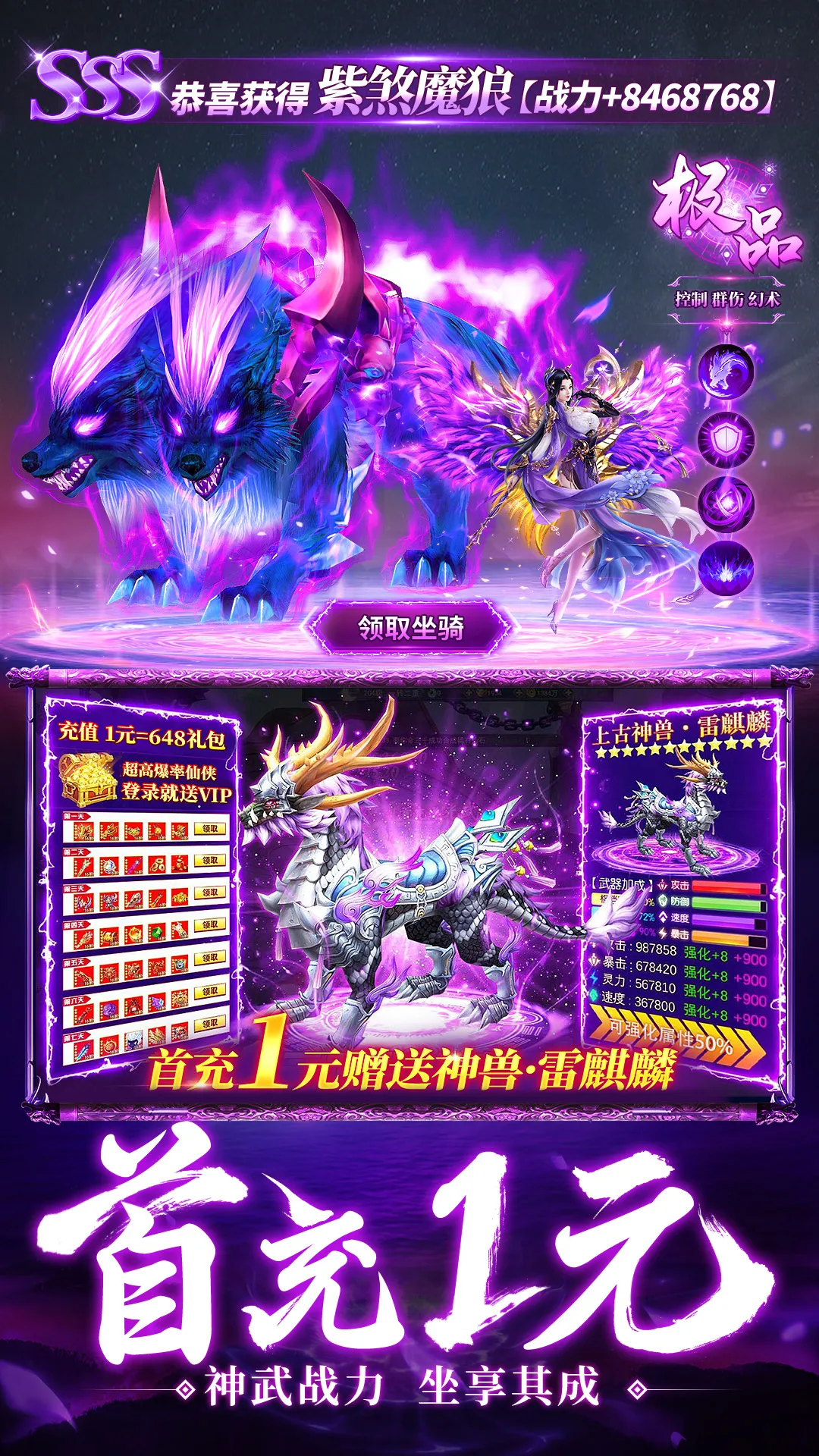 1、福利丰厚:上线直接领取福利礼包,每日登录能得丰厚资源材料与特殊道具,冲级、七日登录、累充等都有好礼,助力全方位培养提升。