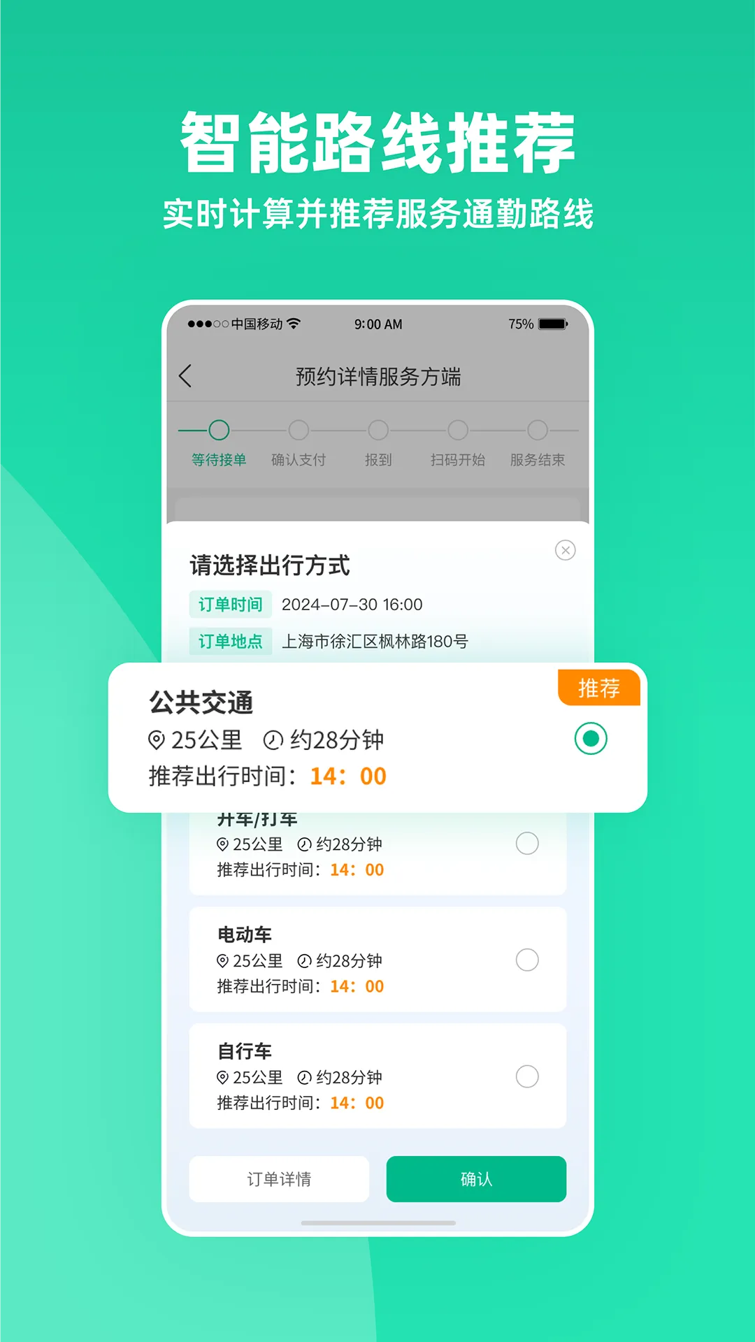 在匹配订单上,采用智能陪诊订单匹配模式,利用大数据算法高效找到适配订单。出行方面,能根据服务地址智能推荐最佳出行路线,满足多样出行需求。