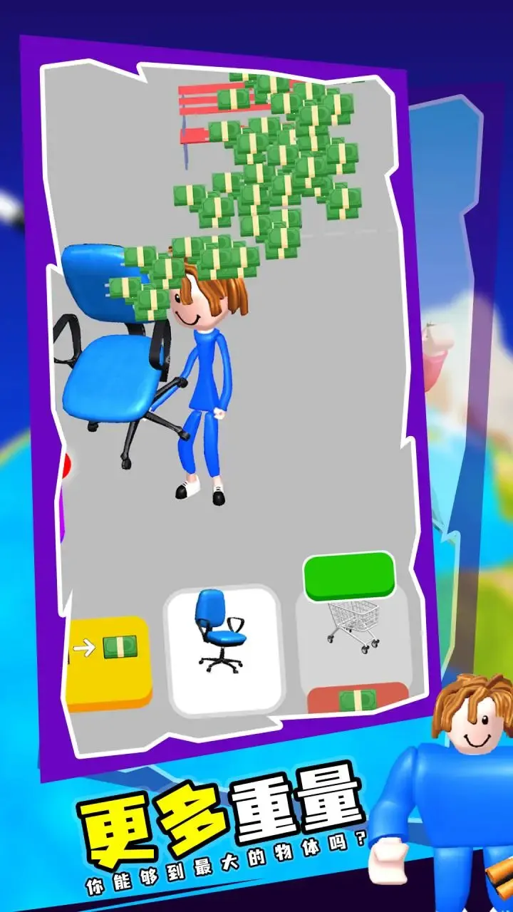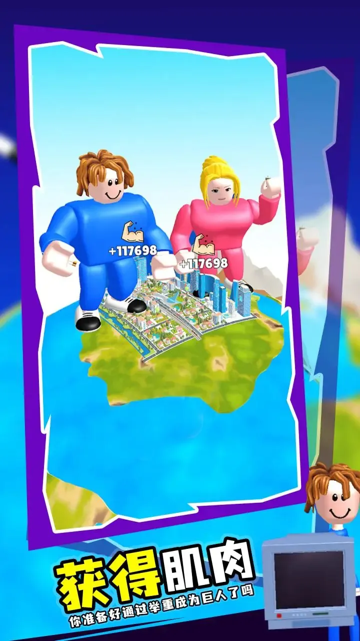 其操作简单易上手,融入物理原理,点击滑动触控即可。随着历练增加,能举起的东西越来越多,像巨石、房子等。多个级别的举重项目可供挑战,赢得比赛能达成成就,解锁酷炫装扮、体验不同角色。而且游戏中还有多种真实场景,不同场景道具不同。总之,它为玩家带来轻松、趣味十足且充满挑战的游戏体验 。