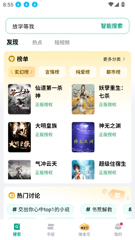 社区互动性强,设有热门讨论区和评论区,可参与话题讨论、分享心得。此外,有自动保存阅读历史、多书签管理等贴心功能。新人有每日签到赚金币福利,应用内无充值入口,所有小说免费读,值得下载体验 。
