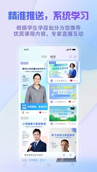 2、专家权威助力:汇聚500位山东省内教育专家,在线为家长开展问题疏导、互动交流服务,提供专业指导。