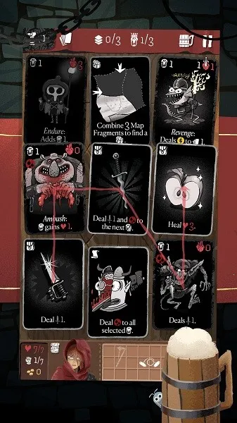 玩家需收集改善卡牌、装备强大物品、完善战略。冒险随机生成,每周有酒馆探秘活动,与全球冒险者竞争。通过连接卡牌路径组合出强大攻击与法术,每个角色的卡牌和效果都考验玩家智慧、勇气与策略。
