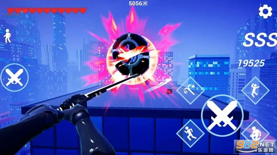 玩法上,操作简单易上手。左侧控制角色移动,可快速奔跑、灵活躲避;遇到黄色圆框,点击右侧钩子能快速穿越障碍;攻击键既能击杀敌人,还能反弹子弹。